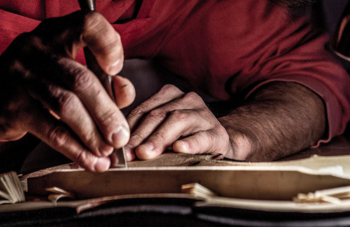 Instruments du quatuor : (fente d'âme, fente de barre, fracture de tête, ré-enclavement, doublage talon, enture, rebarrage, coins, bord, raccord de verni, etc.)